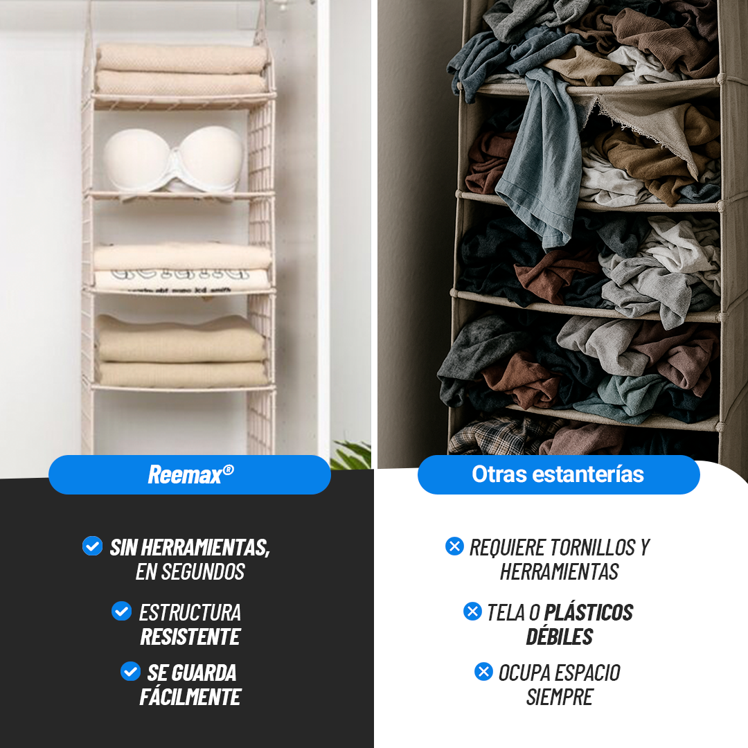 Nuestra Estantería Plegable es la solución perfecta para mantener tu armario organizado y maximizar el espacio en tu hogar.