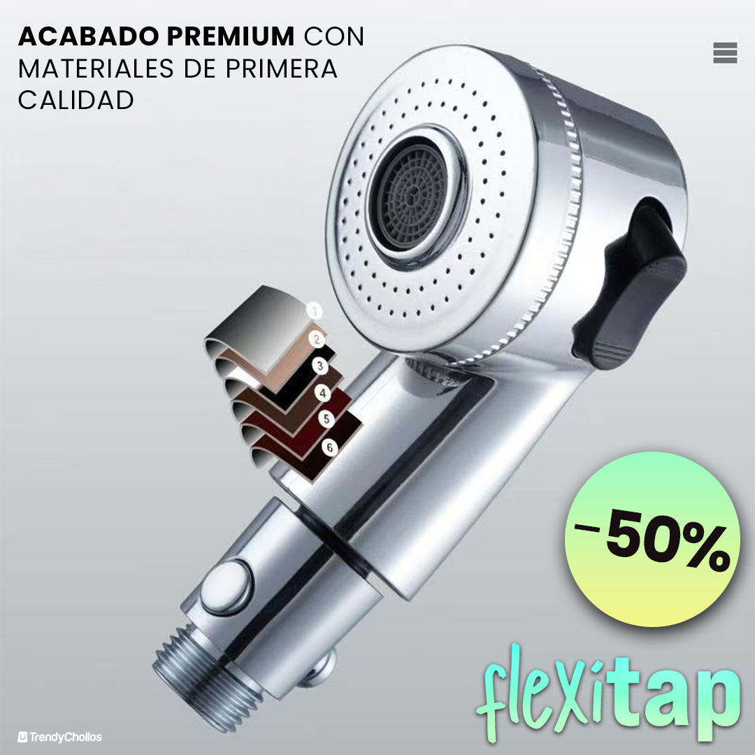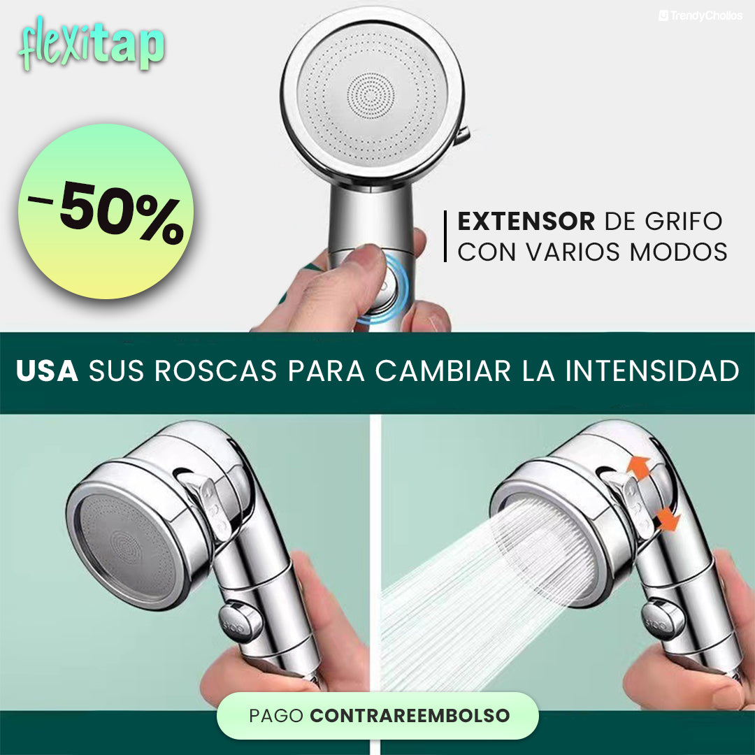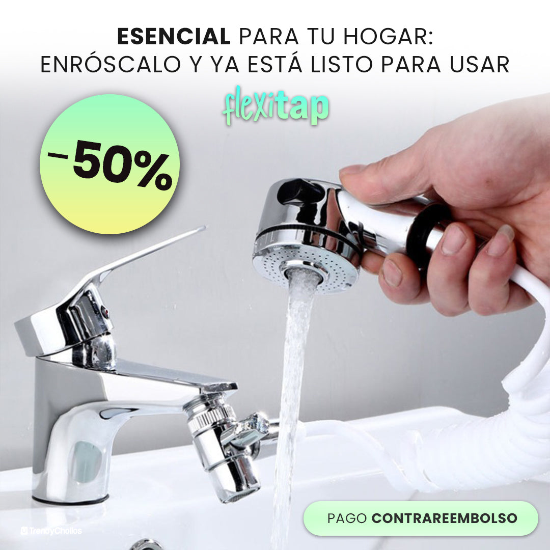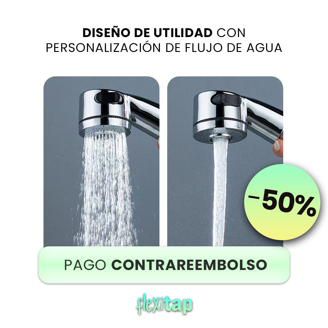 El FlexiTap convierte cualquier grifo común en una herramienta práctica y funcional. Con su diseño giratorio de 1080°, permite alcanzar cualquier ángulo para facilitar la limpieza de manos, rostro o fregaderos grandes. Además, incluye dos modos de flujo de agua ajustables que te ayudan a ahorrar agua sin sacrificar potencia. Fabricado con materiales resistentes, este extensor no solo transforma tu grifo, sino que también eleva la comodidad y eficiencia en tu día a día. ¡Es un cambio que no sabías que necesitabas, pero que no podrás dejar de usar!
