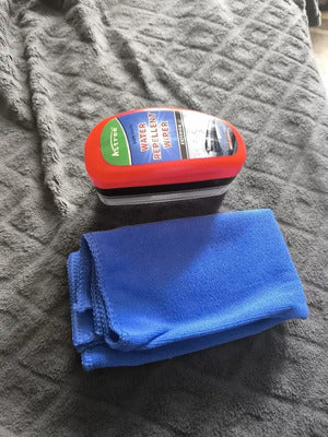 Compacto, eficaz y fácil de guardar. La limpieza es rápida y deja una capa que repele un poco el agua.